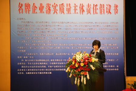 5月23日,为了落实国家质检总局和工业和信息化部联合下发的《关于生产企业全面落实产品质量安全主体责任的指导意见》文件精神,充分发挥名牌企业落实企业质量主体责任表率和带动的作用,促进全省企业全面落实产品质量安全主体责任,强化质量主体责任意识。由省质监局、省经信委联合主办,省质量评价协会协办的名牌企业落实质量主体责任承诺大会在济南隆重召开。省质监局副巡视员王光辉、省经信委科技处调研员封宗庆等有关领导出席会议并讲话。济南、泰安、莱芜、德州、滨州、聊城市山东名牌产品企业法人、质量部门负责人,有关市质监局质量管理人员,省各大新闻媒体等400余人参加了会议。