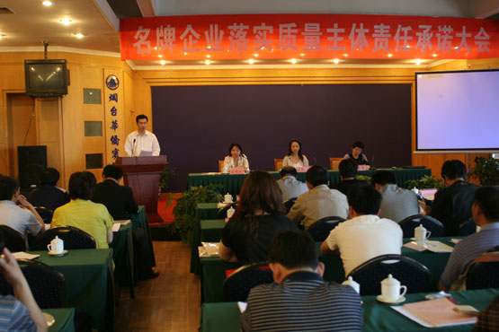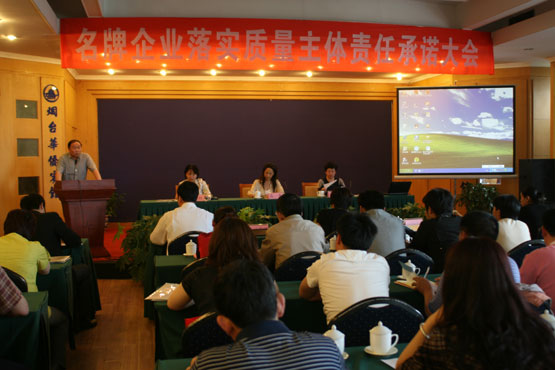 5月30日,名牌企业落实质量主体责任承诺大会在烟台召开。省质监局质量处副处长高青、烟台质监局副局长刘世果等有关领导出席会议并讲话。会议由省质量评价协会会长孟晓红主持,烟台、威海市名牌企业法人,有关市质监局质量管理人员等200余人参加了会议。