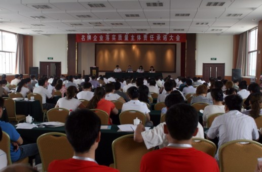 6月8日,名牌企业落实质量主体责任承诺大会在枣庄召开。省质监局质量处处长贾文品、副处长高青、枣庄市质监局副局长王志刚、省质量评价协会会长孟晓红等有关领导出席会议并讲话。枣庄、济宁、日照、菏泽等市名牌企业法人、质量部门负责人,有关市质监局质量科负责人,新闻媒体等200余人参加了会议。