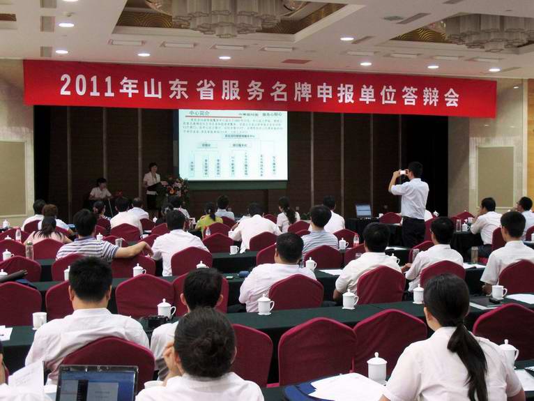 2011年8月6日-7日, 2011年山东省服务名牌申报企业答辩评审会在济南舜耕山庄举行,我省181个服务项目参加了的答辩。促进服务业加快发展,是我省贯彻落实科学发展观的重要任务,也是优化产业结构、增辟就业渠道、促进经济增长的重要举措。作为促进服务业发展工作的重要组成部分之一,服务名牌评价工作开展以来,吸引了全省服务行业优秀企业的积极参加。已评选出的323个山东省服务名牌得到了社会各界的普遍认可,起到了良好的示范作用。通过前期的申报资质审核和专家网络材料评审等环节,从申报企业中甄选出181个服务项目参加本次的答辩。答辩会现场企业的精彩演示和专家现场提问、打分以及现场企业的互评,高度挖掘和归纳了优秀服务业企业在创建服务品牌、提升素质水平的先进经验和做法,对企业进一步增强品牌意识,提升服务质量水平起到了非常显著的促进作用。全过程公开、透明、相互监督和评比的形式,也使山东省服务名牌评价工作更加公平、公正。